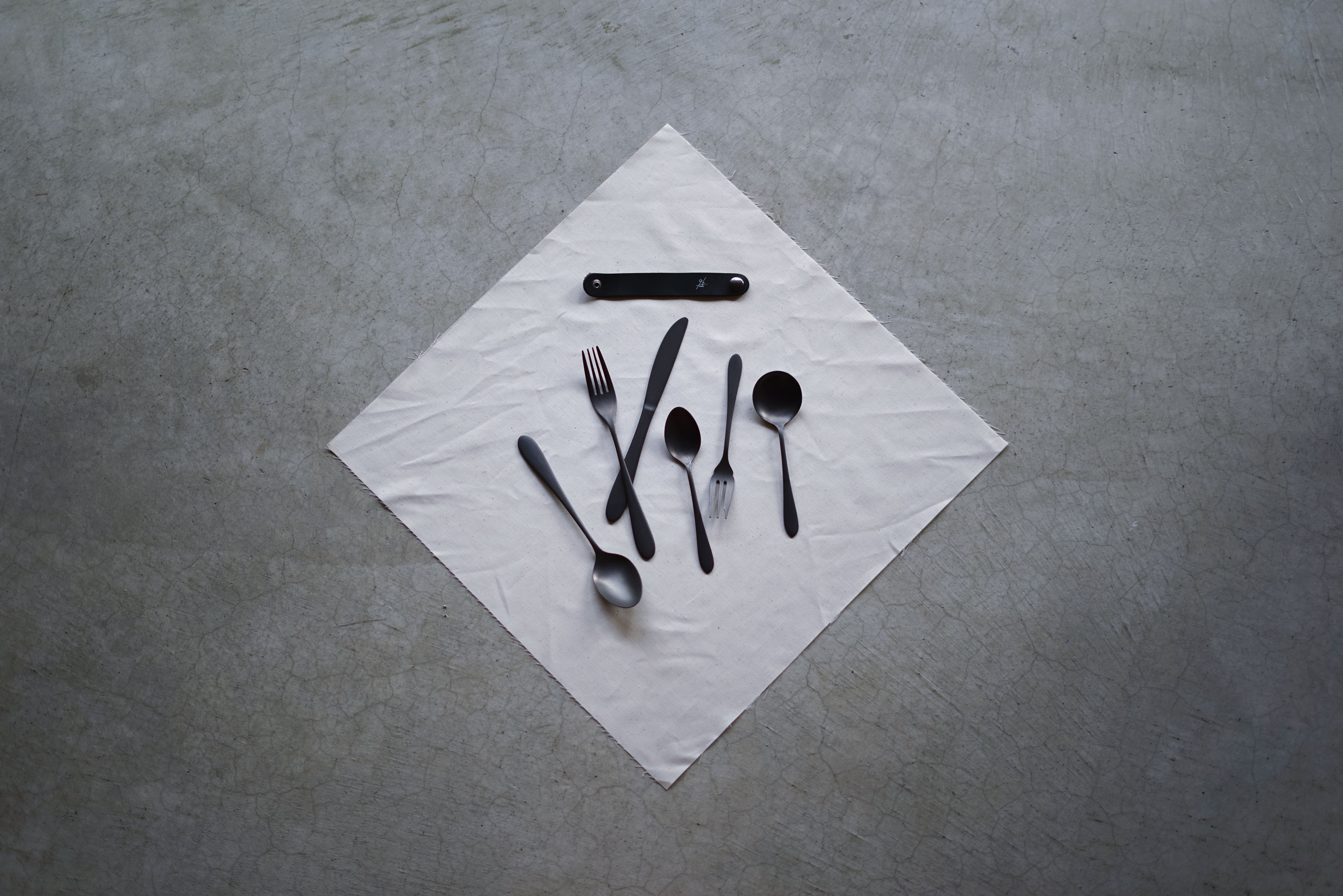「スプーン大」「フォーク大」「スプーン小」「フォーク小」「スープスプーン」「ナイフ」のざらざらを1本ずつセットにしました。